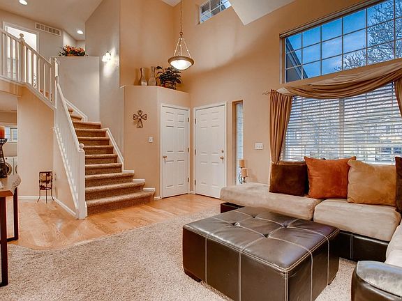 Desirable Chatfield Bluffs community! Great layout with 4 bedrooms up! Upstairs is the master bedroom with 5 piece master bath ensuite, 3 additional bedrooms, Large Full Bathroom with double sinks, 2 linen closets and beautiful wood floor hallway! Wonderful main floor layout includes a grand vaulted entrance, formal living room, dining room, large kitchen overlooking family room with fireplace, a laundry room, and a powder room! Lots of natural light throughout! Finished 25x20 basement with a large 3/4 tiled bathroom and two egress windows! This Fabulous 2 Story Engle home sits on a culdesac convenient to walking paths, parks, schools, shopping, dining, amenities! Enjoy your coffee or wine on the newly stained deck overlooking the peaceful, mature, green, flat backyard! Homes do not come available in Chatfield Bluffs north very often, do not miss out on this beauty!