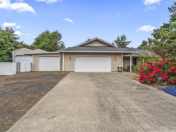 This pristine home at 87650 Woodmere West offers an unparalleled living experience. Boasting 3 garages, including an RV garage/workshop, this property is a haven for those with a passion for both comfort and functionality.Spanning 1,498 square feet, this immaculate home features 3 bedrooms. The spacious living and dining areas are enhanced by vaulted ceilings. The dining area opens up to a charming cedar sunroom via a glass slider, perfect for enjoying the serene surroundings.The kitchen is a chef's delight, showcasing stainless steel appliances and abundant natural light streaming in through a skylight. The primary bedroom offers double closets and a private bath with a convenient step-in shower. Two additional bedrooms provide versatility for guests, a home office, or pursuing hobbies.The utility room is both functional and organized, equipped with a sink and ample storage space. The home features a ductless heat pump and zonal heating for year-round comfort. A 3-car garage provides plenty of space for vehicles and storage needs.A separate RV garage with a workshop is a standout feature, measuring 31 feet in depth. Ample parking in front of the home accommodates RVs, boats, or additional vehicles with ease.This property seamlessly combines practicality with elegance, offering a rare opportunity to own a meticulously maintained home in a desirable location.