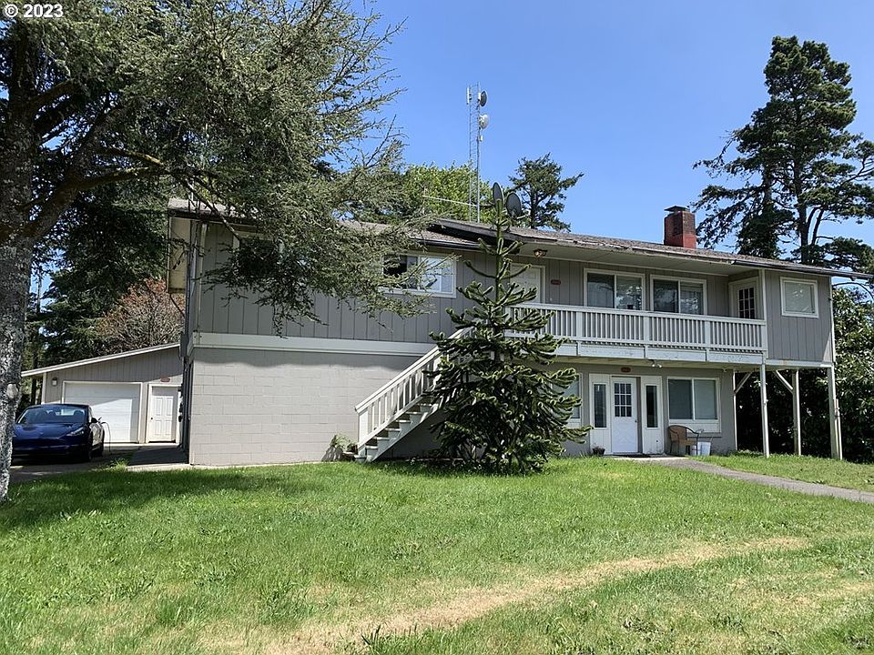 Unique home with storefront below. Set back on one and a half acres on Hwy 101 frontage, in the path of growth. Home features 3 bedroom 1 bathroom with den, fireplace, appliances, privacy, views, spacious with 1464 Square Feet. First floor is perfect for business with 700 Square Feet, shelving, kitchenette, half bath, and storage. includes outbuildings, lots of parking and room for your boats, RV's, Dune Buggies and Signage. Can be hooked up to city services. Check with the city planning for all that is possible for construction potential.