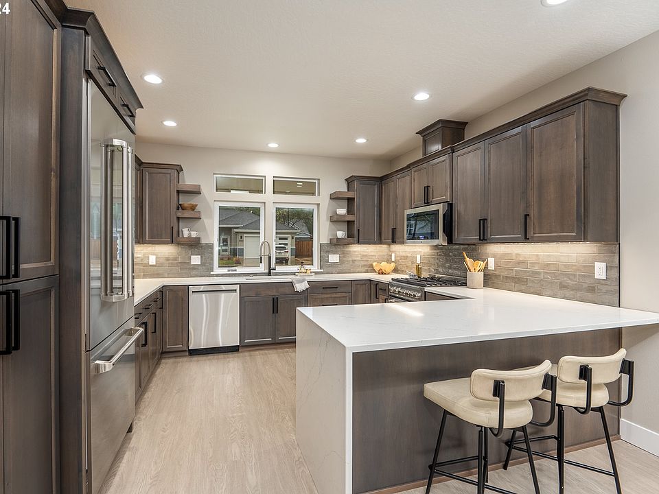 - Features: Builtin Features, Builtin Refrigerator, Daylight, Dishwasher, Disposal, Eat Bar, Gas Appliances, Gourmet Kitchen, Microwave, Pantry, High Ceilings, Solid Surface Countertop