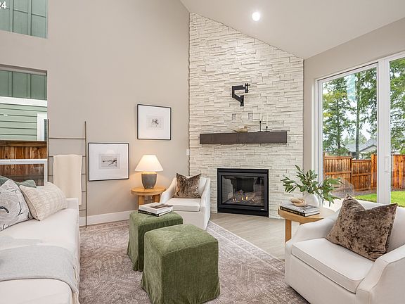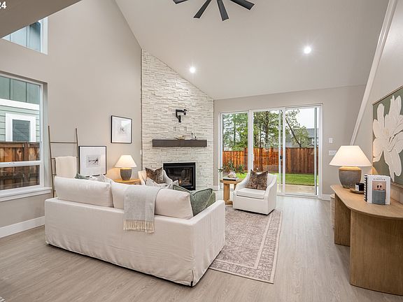 The Scappoose floor plan is for sale! 2074 sq ft with main level primary suite and three bedrooms upstairs. The kitchen cabinetry is a beautiful stained alder with a low-maintenance white quartz countertop. Gas cooking is available with a built-in microwave and tiger fridge. There is also a large pantry and tons of storage. Light and bright throughout with lots of windows and light flooring. The living room has a vaulted ceiling with a stacked stone gas fireplace, an oversized sliding glass door to a patio, and a fenced & landscaped backyard. The primary bedroom has a custom tiled shower, a large walk-in closet, and a double quartz vanity. The main level laundry room has cabinetry for extra storage. 3 nice-sized bedrooms share a large bathroom with a double quartz vanity and bathtub upstairs. Can lighting throughout. 2 car attached garage & 12 ft gated RV space. The propane tank feeds the fireplace, gas range, and tankless water heater. Come check out the newest subdivision: Madrone Ridge in Veneta!