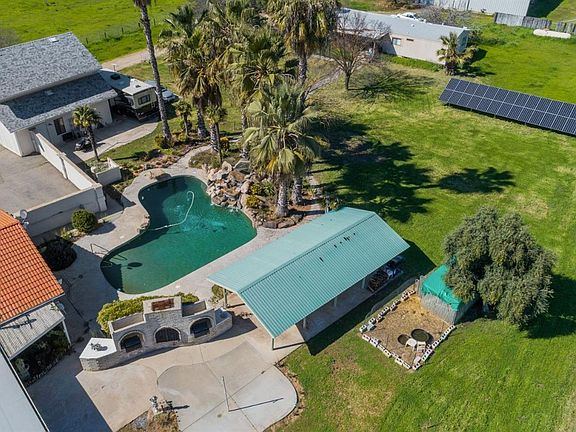 WOW! 4.86 acres and Close to Town! This fenced property is just 1.9 miles from Clovis Comm. Hosp and the infrastructure is Amazing! You will love the gorgeous Spanish archways and honeycombed Terra Cotta tiles thruout the open floorplan. 4 bd, 3.5* Ba w lg eat-in kitchen, bar seating, walk-in pantry, wet bar, separate LR w Formal Dining area, 2 Master Bdrms for poss mom-in-law set up, an office/library w built ins + huge walk-in safe. Xdeep 884sf garage and OWNED SOLAR. Step outside to expansive grounds featuring a custom pebble tech pool w fabulous terraced, rock waterfall, built-in Adobe BBQ area w large, lighted covered patio for entertaining! Next, ck out the Barn w drive thru bays + bath/loft apprx.1530sf. Massive Metal Wkshp apprx 2400sf w bays, 1/2 Ba* + huge attached covered area for parking/or set up horse stalls/tack? 2 RV Prking Set Ups w Sewer/H20/elec, 2 Wells, 2 Septics. 1 APN w 2 Addresses good for dual fam set up-Mobile Home-as-is owner may remove-PreApproved appts only