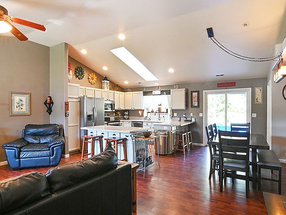 - RoomKitchenFeatures: Free-Standing Range, Island, Vaulted Ceiling(s), Skylight(s), Free-Standing Refrigerator, Laminate Flooring