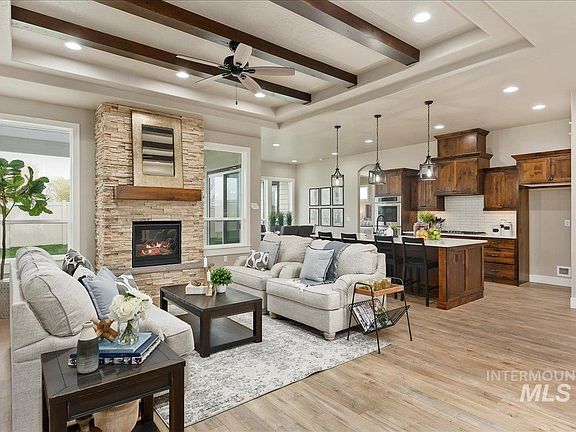 The "Denali IV" - Spacious single Level, 3 Bdrm + office +main level bonus room, features Guest Suite, enormous Garage incl. 25' 2car w/44’ RV Bay! Chefs love the large Upgraded Designer Island Kitchen w/walkin Appliance Pantry. Spacious Great Room with fireplace & Signature Beamed Ceiling open to Dining Room! Deluxe Spa Like Master, his/her sinks + makeup vanity & direct Laundry access! *Photos Similar*