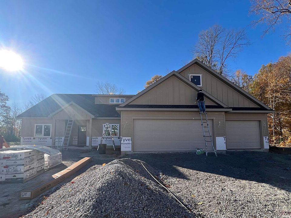 WOW! BUYER CAN STILL MAKE MANY COLOR SELECTIONS!!! This large split-bedroom ranch has it all. Featuring 3 bedrooms, 2 full baths, and 9-foot ceilings, this home offers both space and style. The stunning gas fireplace is beautifully wrapped in stone, creating a true focal point in the great room. The kitchen is designed for entertaining with a large island, custom D & B cabinetry, quartz countertops, and a granite composite sink; and a walk-in pantry with custom shelving and Elec outlet. A pocket office is conveniently located off the entry, along with a separate laundry room and extra storage under the stairs. The cathedral master suite includes a spacious bathroom and custom closets. Durable laminate flooring flows throughout the main spaces. Upstairs, you’ll find an unbelievable attic/bonus area 21x14 bonus area finished (walk-in attic can easily be finished for even more living space). The backyard backs up to a lovely tree line for privacy. Rounding it out is a 3-car garage with service door.