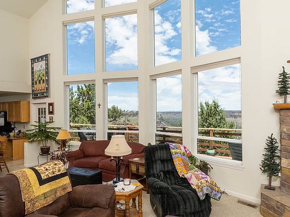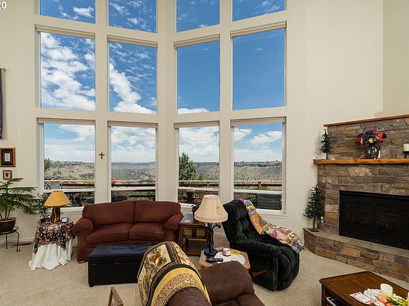 Nearly 5-acres, at the Canyon's edge, w/exceptional views of the Crooked River, Opal Springs & canyon walls, w/Mt. Hood as backdrop! Enjoy these views throughout the living space from prow wall of floor-to-vaulted-ceiling windows, or from large gazebo & lookout deck, built at rim's edge. Property is fenced, & handsomely landscaped, w/a terraced, landscaped walkway to the gazebo. Rainwater is collected in decorative ponds. Foundation is foam framing, w/power and walk-in storage.
