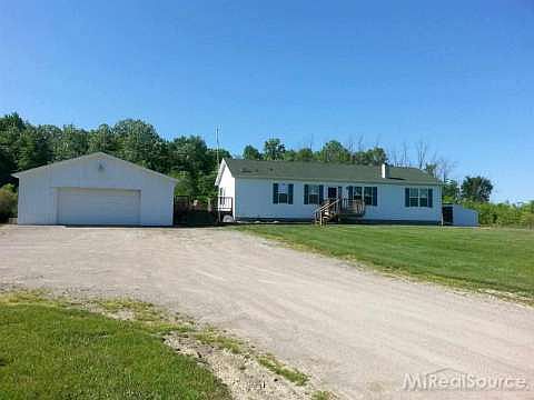 Private, half wooded 10.14 acre property includes a pond, fire pit, metal shed with electric, and a 30 amp plug in the yard to connect a camper. The 1/2 wrapped deck connects to a fully insulated pole barn with 100 amp service and concrete floor. The pole barn includes a knotty pine bar.