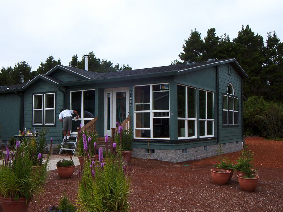 1 level w/enclosed front porch & enclosed sun room w/hot tub on back of house. Lovely gardens. Propane 2nd heat source, fireplace & stove. Hardie cement board siding.