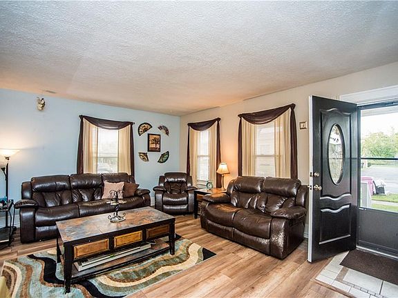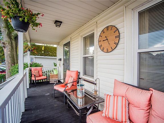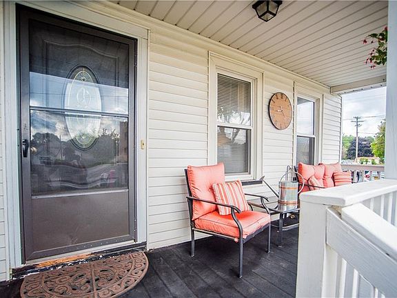 WELCOME HOME to this well maintained 4 bedroom, 2 FULL bath vinyl-sided colonial in Greece! The inviting front porch greets you as you enter this lovely home! Wonderful updates throughout! All newer flooring throughout first floor. Gracious Formal Dining Room. Updated eat-in Kitchen with wood cabinetry, granite countertops & all appliances included. Full bath with tub and tile surround off of Kitchen. Four nice sized bedrooms - all with single closets. Master Bedroom has access to full bath w/tiled shower surround & white fixtures. Full walk-up attic provides additional storage. Partially finished lower level features laminate flooring & extra storage. Brand new furnace - 2019 and newer windows. Partially fenced yard with concrete patio & fire pit area! DON'T MISS THIS ONE!