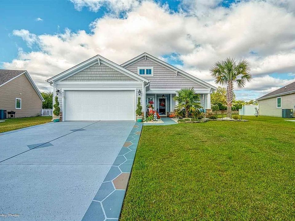 Welcome Home to 877 Bonita Loop. This 3 bedroom, 2 Bath single level home is clean, bright, open and very well kept. You're going to love the open concept layout, the outdoor entertainment areas and upgrade features of this home. The large kitchen has stainless appliances, granite counters, tile floors, a breakfast nook and breakfast bar. The laundry is located off the kitchen and has wall cabinets, a convenient solid surface counter top and front load washer and dryer. The main living and dining areas have wood floors, vaulted ceilings and contemporary lighting fixtures and fans.The spacious master bedroom has tray ceiling, ceiling fan, double vanity sinks, his and hers closets, step in shower and a soaking tub. Not only is this home impressive inside but there are several outdoor features that make this home perfect for entertaining and or enjoying the quiet time outdoors. There is a spacious and inviting front porch. A screen porch and a large patio that overlooks the back yard with a view of a neighborhood pond. There is abundant outdoor storage with a custom built 8X10 detached storage building and a 2 car garage with floored attic above. The driveway is painted and the garage, porches and patio have painted concrete floors as well. All major kitchen appliances, washer / dryer and window blinds convey with sale. This well appointed home is in the Cameron Village Community offering residents and guest outstanding amenities to include a swimming pool, clubhouse, outdoor screened pavilion, playground, basketball court, tennis courts and pickle ball courts. Conveniently located near Surfside Beach and in Horry County / Saint James School District. Call today to schedule a time to view this truly exceptional home.