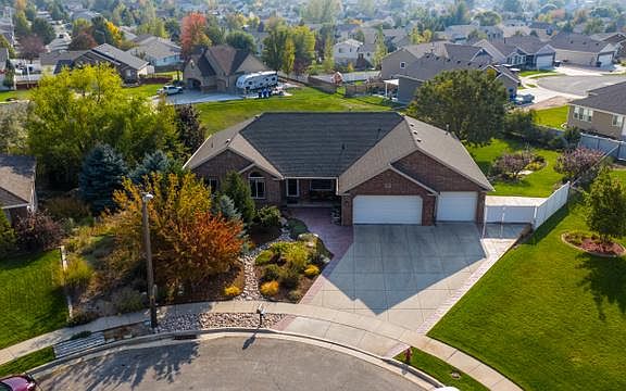 Multiple offers received. No more showing after 6pm Monday. 2nd floor sq ft is actually the suspended 4 car garage basement area. Wonderful fully finished rambler. 6 bedrooms, 3 baths, main floor laundry and 4 car garage. All your boxes are checked with this custom built all brick home. Huge trek deck and spacious patio,too. The basement is fully finished - with the exception of the 900+ space under the suspended 4 car garage - options for yard care equipment, work out room, theater room... Your opportunity to design. Family room is hard wired for surround sound and has full walkout to rear yard. The garage has seperate heater and utility sink with additional storage above with drop down stairs. Dual heating systems: Basement floor heated using radiant heat that is controlled using 2 separate thermostats (1 thermostat for bedrooms and 1 for the rest of the basement). Basement has ducts for gas furnace use also. Water for radiant heat system is heated by a boiler. Fully landscaped front is xeriscaped.