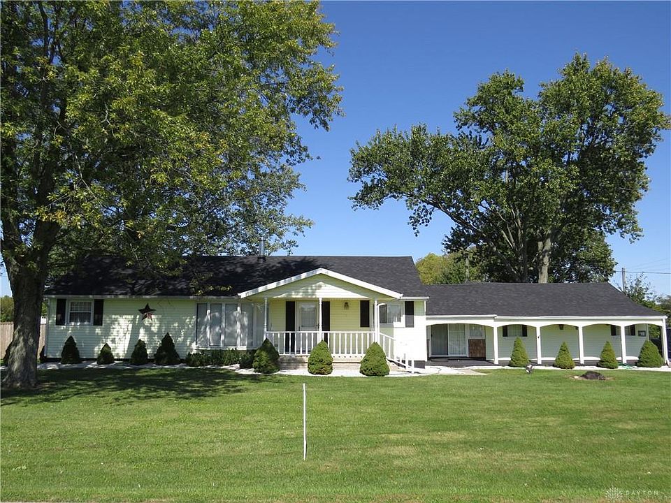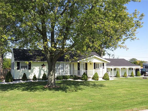 Brand new roof! Come see this 3BR ranch home with 2 sun rooms plus large attached 2-car garage with an extra large 21x15 workshop/man cave plus a super size outbuilding and storage shed as well. As you walk out the 18x10 enclosed patio that leads to a wood deck where you can entertain guest as you enjoy the scenery and peace and quiet. The backyard is huge with plenty of room to roam. This property is just under an acre of land located in Miami East School District.
