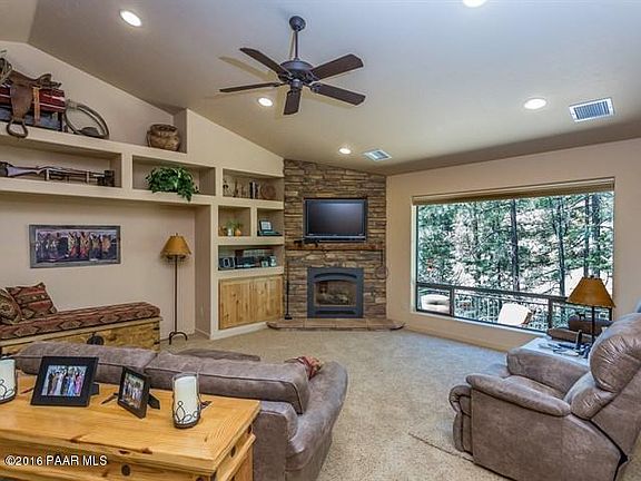UNBELIEVABLE HOME IN THE HIGHLAND PINES SUBDIVISION! Surrounded by tall Pines and Boulders. 4-BDRMS, 2-BATHS + an ENCLOSED, CUSTOM PARTY PATIO (400SF) w/built-in table, chairs, bar and mini-fridge. Built-in cabinet w/Wine Rack and Wine Fridge in the LARGE GREAT ROOM. FANTASTIC KITCHEN has Knotty Alder cabinets w/under cabinet lighting and a convenient breakfast bar. UPGRADES INCLUDE: Insulated, pleated shades, water softener and whole house H20 filtration system. Hardwood flooring in entryway and kitchen. ALSO, LED lighting, built-in cabinetry/wine rack in great room, neutral decor T/O. EVERGRAIN Deck, 3-car EXTENDED garage and TONS OF STORAGE! Low maintenance fiber-cement siding and 40-year roof. Bathrooms are separately heated. BEAUTIFULLY MAINTAINED BY ORIGINAL OWNER. HURRY!