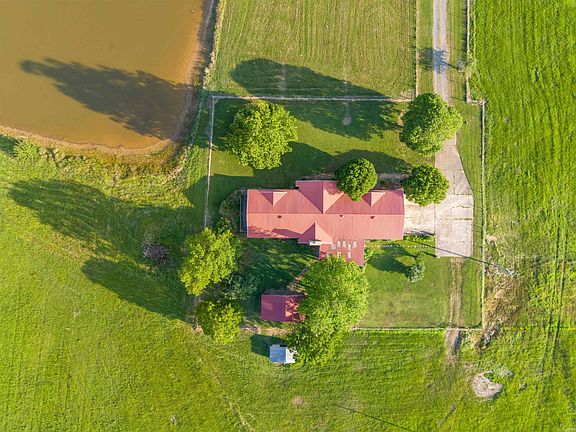 This beautiful 40 acre property has lots to offer with its 4 ponds (with fish), 2 wells, large hay barn, storage building (with storm shelter), floored dog house, and 40 x 60 wired shop (with bathroom) and doors on each end. Although there are 3 bedrooms, there is a room that can serve as a 4th bedroom (just needs a closet). All rooms have ample space (unlike many newer homes). Huge living with beautiful wood-burning fireplace and large kitchen with a big island and pantry. Big dining room with 2 built-in China cabinets. The Primary bedroom has 2 walk-in closets and a bathroom with double sink vanity and tub/shower combo. There is a Jack-n-Jill bathroom (with lots of storage) between the other two bedrooms with each bedroom having a walk-in-closet. Sewing/craft room with built-in storage. You will also enjoy time spent in the very spacious sunroom that looks out onto the yard with its beautiful flowers and trees. Property is filled with beautiful pear, apple, fig, pecan trees, and grapes. Rose bushes. Deed restrictions: NO mobile/modular homes, NO subdivision (except for IMMEDIATE FAMILY--if immediate family builds, 2,000 sqft minimum) Mineral rights DO NOT Convey