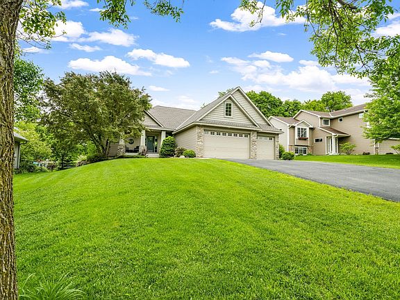 Spectacular Custom Built Rambler has a few surprises in store for you! Three bedrooms on one level with a split floorplan with a primary suite that is to die for...large tiled shower has double showerheads, double vanity and a big walk in closet make this the perfect retreat at the end of the day. Great room with open vaults and a stacked stone gas fireplace, built ins and surround sound wiring allow for entertaining or cozy family board game nights. Dining area has a built in Buffet and walks out to the very large screened in porch where you will want to have your morning coffee and your evening wine. Sunken hot tub and stairs leading to the wooded lot that backs to fields for maximum privacy and relaxation. Kitchen has so many cabinets and a walk in pantry, mudroom and main floor laundry is adjacent to heated 3 plus car garage that has a bonus walk up space above the garage, LL also waiting on your final touches.