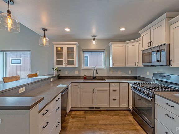Cozy up and get ready for cooler temps while staying perfectly comfortable in this like-new, meticulously maintained home. Fabulous floor plan, gorgeous finishes, low maintenance exterior, and attractive curb appeal offered by this 2-story beauty in Golden Estates. “Main level living” includes laundry room, open kitchen/dining/living with vaulted ceilings, and glass doors from living room out to east facing deck. Quartz countertops in kitchen, bathrooms, and on the built-in entertainment center with wine fridge in the great room! Main level primary suite has ample room for a king-sized bed, plus large walk-in closet and a stunning en suite bath with custom tile shower. Upper level features two bedrooms (one XL) and a full bath; views from the upstairs bedroom capture the mountains surrounding Helena. Convenient location with easy proximity to Capitol High, Four Georgians Elementary, Carroll College, and the L & C County Fairgrounds. Easy to access shopping, restaurants, airport, and I15 taking you to the Capitol Complex or St Pete's without maneuvering through town. Natural gas forced air heat with central A/C, HRV air exchange system, city water & sewer, attached double garage is insulated and heated. Fully landscaped including fenced back yard, curbing, trees, and a grassy area providing great outdoor space yet remaining wonderfully low maintenance. A phenomenal value for the size, condition, location, and amenities. Make it your home sweet home!