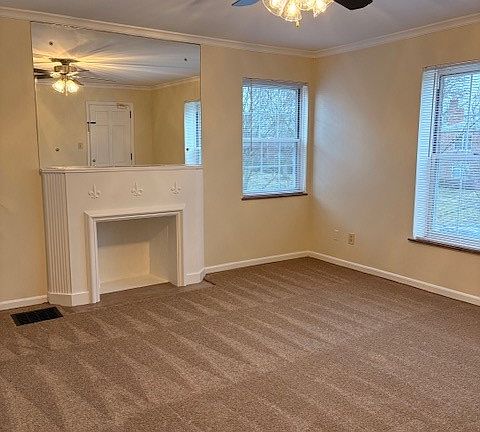 One car detached garageDecorative fireplaceCentral air conditioningCarpet and blinds throughout