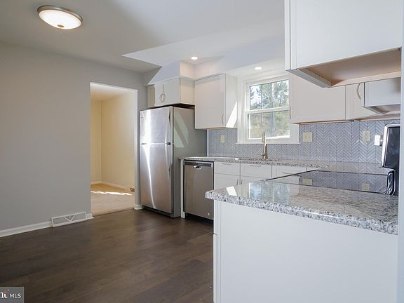 Cozy 3 bed, 1 full/2 half bath home has large back yard and convenient layout. Door could be added to den to create 4th bedroom or increase sound separation. Kitchen is newly remodeled with stainless steel appliances and granite countertop. Plenty of storage or workshop space in full, unfinished basement. Newish heat pump system and water heater with filters mean this home has trouble free infrastructure. Back yard is fully fenced with vinyl privacy fence and backs onto Fritz Elementary School.
