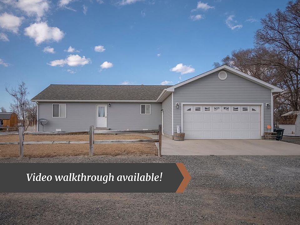 Bring all your toys and horses to this really nice 3 bed, 2 bath house on 1.18 acres. The home features a large master suite with a huge walk in closet. Open floor plan with a vaulted ceilings in the great room, real hardwood floors, 2 car attached garage, well, sprinklers and a brand new roof. The wrap around driveway will take you back to a 1200 sq/ft heated shop. Plenty of room for horses too!