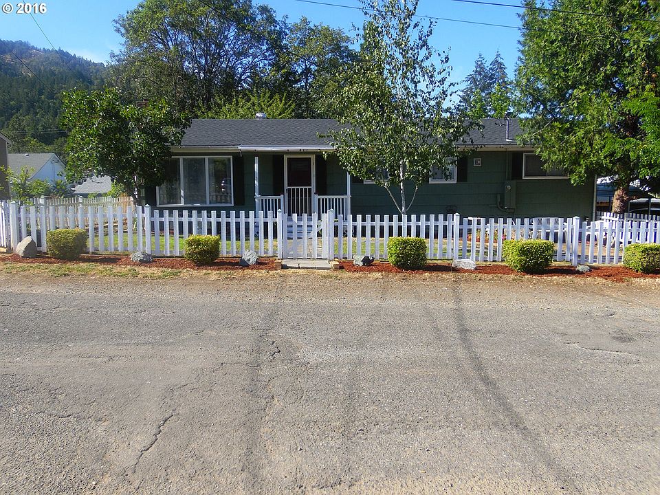 Great Starter/Investment Home. This 1-story 3-bedroom/1-bath home on.23 acres in Myrtle Creek. You'll enjoy a master suite with dressing room, tasteful dining room, fashionable living room with wood stove for cold days, hardwood floors, step-saver kitchen with electric range, appliances included, pantry. Backyard features a nice covered deck, BBQ Pit, Fenced , Workshop, Garden. Home features lots of storage and mature landscaping!