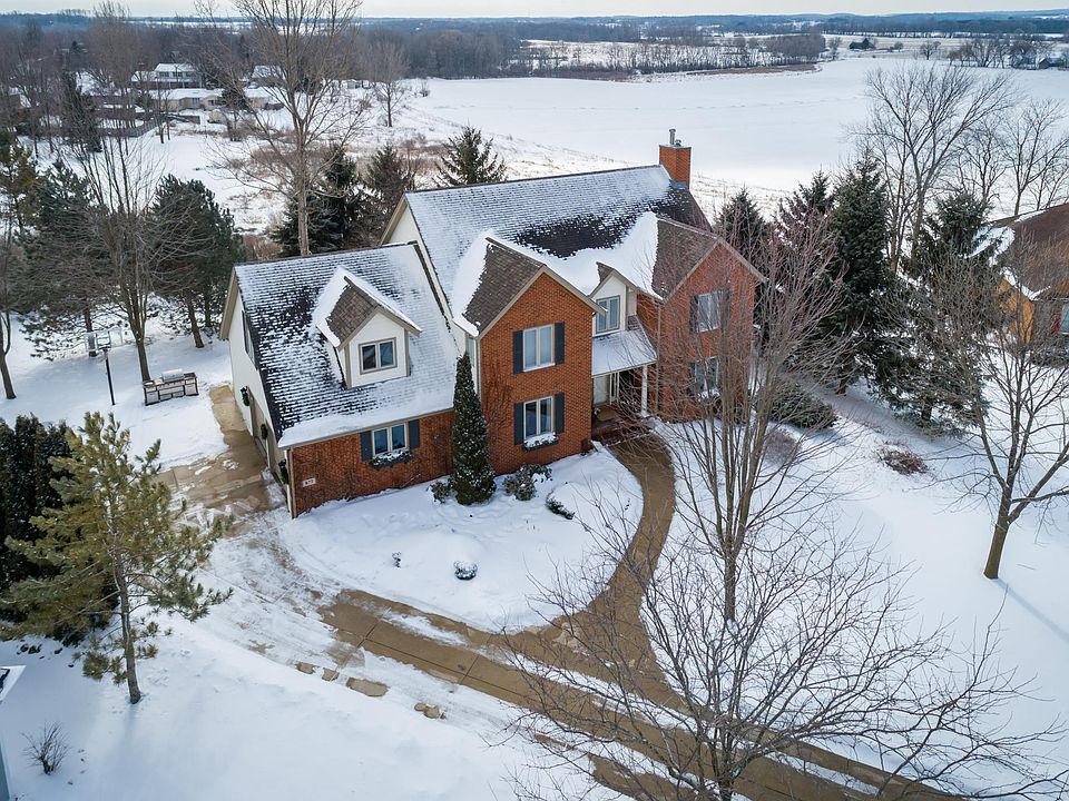 Sitting on a private quiet cul-de-sac with a private back yard & stunning countryside vistas, this stately custom home is in one of Hartford's most desired neighborhoods. The property has been professionally landscaped & offers a fully exp basement w/terraced patios. Extremely architecturally appealing & not your typical ''cookie cutter'' design inside or out, it's rich design features loads of brick, gables and a steep roof line along w/interior white woodwork, beautiful stained solid wood doors, built in's, extensive REAL HWF's throughout, new carpet, updated kit w/quartz counters, walk in pantry, master suite with full ba, walk in closet & private home office, exp. finished LL w/1/2 ba, & oversized garage w/storage area. Walk to schools and the NEW water park! Truly a timeless home.