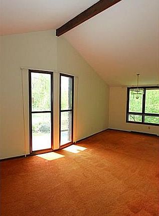 Sunken living room/dining room with wall of windows and vaulted beam ceiling. Large kitchen also with wall of windows. Family room with beam ceiling, brick fireplace and door to enclosed covered porch. Additional room on first floor could be bedroom, den or office.All four bedrooms are on the upper level with the main bath and the master bath. The laundry is also on the upper level. Huge gameroom with built ins, brick fireplace and door to concrete patio. Full bath in the lower level. Oversized garage.