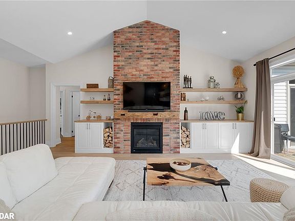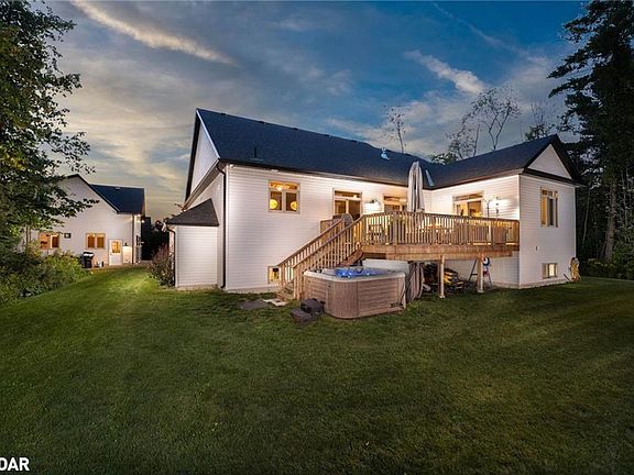 Welcome to 877 Pine Avenue, a stunning custom-built farmhouse-style raised bungaloft that offers 1.94 acres of privacy, surrounded by mature trees. This one-of-a-kind property showcases exceptional design and craftsmanship throughout. From the cathedral ceilings and striking fireplace feature wall with custom built-in cabinetry, to the wide plank engineered hardwood floors, pot lights, and oversized 7' baseboards, every detail has been carefully curated. The spacious gourmet kitchen, complete with quartz countertops and a farmhouse sink, flows into the open-concept living area, which leads to a private deck and yard—perfect for entertaining with its fire pit and tiki bar. The lower level features large above-grade windows, a bedroom, full bathroom, ample storage, and a versatile rec room currently used as a home gym. A separate entrance on the lower level leads to a beautifully finished 1-bedroom in-law suite, ideal for multi-generational living. The property also includes an attached double garage and an impressive nearly 1200 sq. ft. detached heated shop with three bays (one serving as a showroom or office), two ventilation systems, and a 2-piece bathroom—perfect for additional workspace or storage. Just a short walk to the beach, marina, and local restaurants, and minutes from Friday Harbour, with easy access to the GTA, this home offers the perfect blend of peaceful living and convenient location. Don't miss this incredible opportunity!