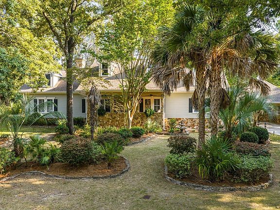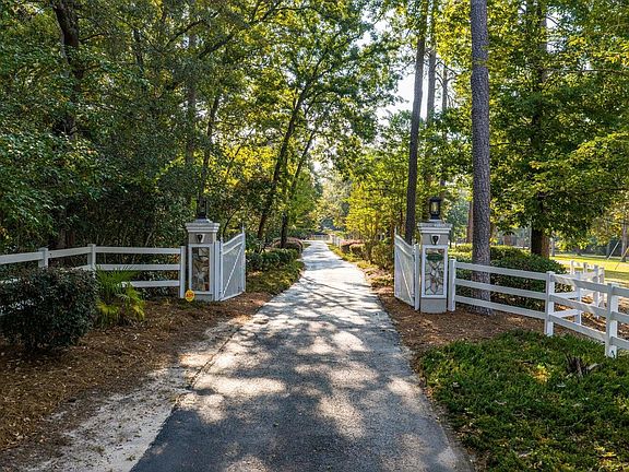 Southern luxury estate + shop compound on 5.19 acres (5 parcels sold together; Edgefield County, North Augusta area). Private, fully fenced property with a privacy gate, mature trees, and hardscaped walkways connecting multiple powered outbuildings. One parcel is zoned commercial (buyer to verify uses). Public water + septic; numerous spigots throughout;
