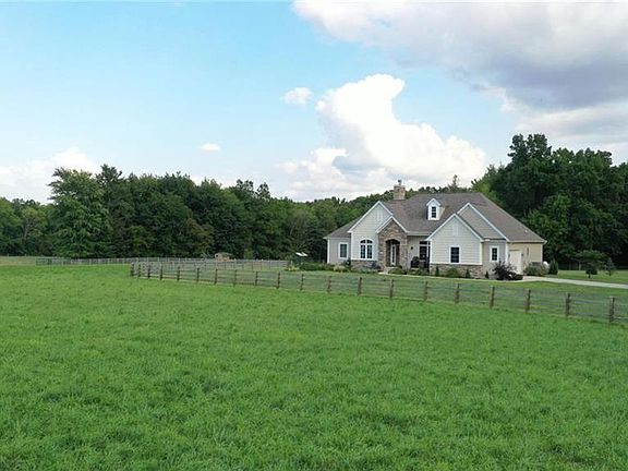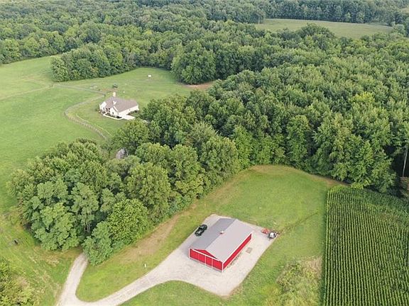 Spectacular 62 ac. Farm & Home located mins from Loveland and Maineville. Better than New, built by Schumacher in 2017. Home secluded back 1500' driveway. Awesome 2500 sqft Open Floor Plan Ranch on Full 9'+ basement ready to finish and 15x18 screened patio. Gorgeous mix of pastures and hay fields scattered amongst rolling woods with small creek running thru it. Horse pastures totaling 5 ac. 22 ac of quality hayfields, 40x64 pole barn built 2018. Miles of riding trails and loaded with wildlife!
