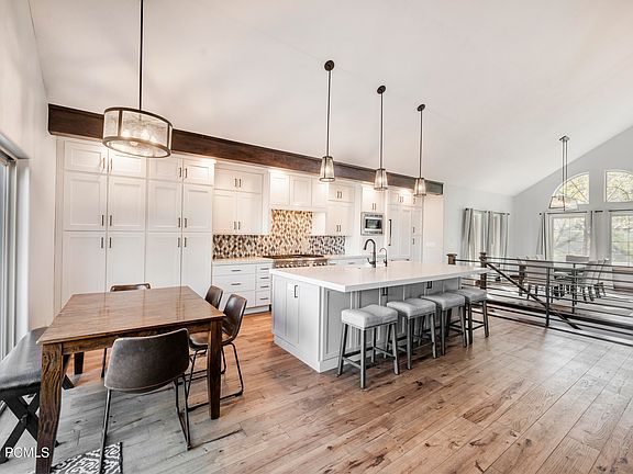Located on a quiet cul-de-sac in Jeremy Ranch, this home offers the comforts of mountain living in one of Park City's most sought-after neighborhoods. The newly renovated great room and kitchen provide a warm, open, inviting space for family living and entertaining. The masterfully thought-out floor plan offers main level living with the primary and two additional bedrooms. The lower-level walk-out features three bedrooms, a wet bar, and a large second family room. Enjoy the outdoors at home on the expansive corner lot featuring a main level deck with stunning views and a beautifully manicured, flat, usable yard. A must-see in Jeremy Ranch. Thermador appliances. Oversized three-car garage.