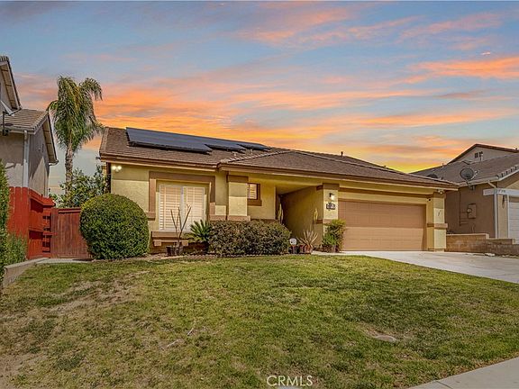 WOW! Welcome home to this beautiful single story in Corona! Featuring 3 bedrooms and 2 full baths this home is not one to miss. Upon entering, you are greeted by a well maintained front yard and PAID OFF SOLAR & New HVAC System! Entering this spacious layout, you are greeted by a large family room featuring a cozy fireplace, plenty of storage/cabinet space and newly installed plantation shutters enjoyed throughout the home. Adjacent is a spacious kitchen featuring cabinet/storage space, kitchen island and views to your backyard! The master bedroom includes additional space perfect for reading/home set up cozy with a fireplace and crown molding! The master bathroom includes dual sinks and plenty of space for both and direct access to your backyard from the master. Down the hall welcomes 2 additional spacious bedrooms, large guest bathroom with shower & dual sinks, and hallway storage space! The backyard boats plenty of space for family fun located on a 9,000 sq ft lot! Including a newly installed wood patio cover and there is plenty of space to make your own! This great location is nearby schools, freeway access, golf courses and the famous Dos Lagos shopping center! This is not one to miss!