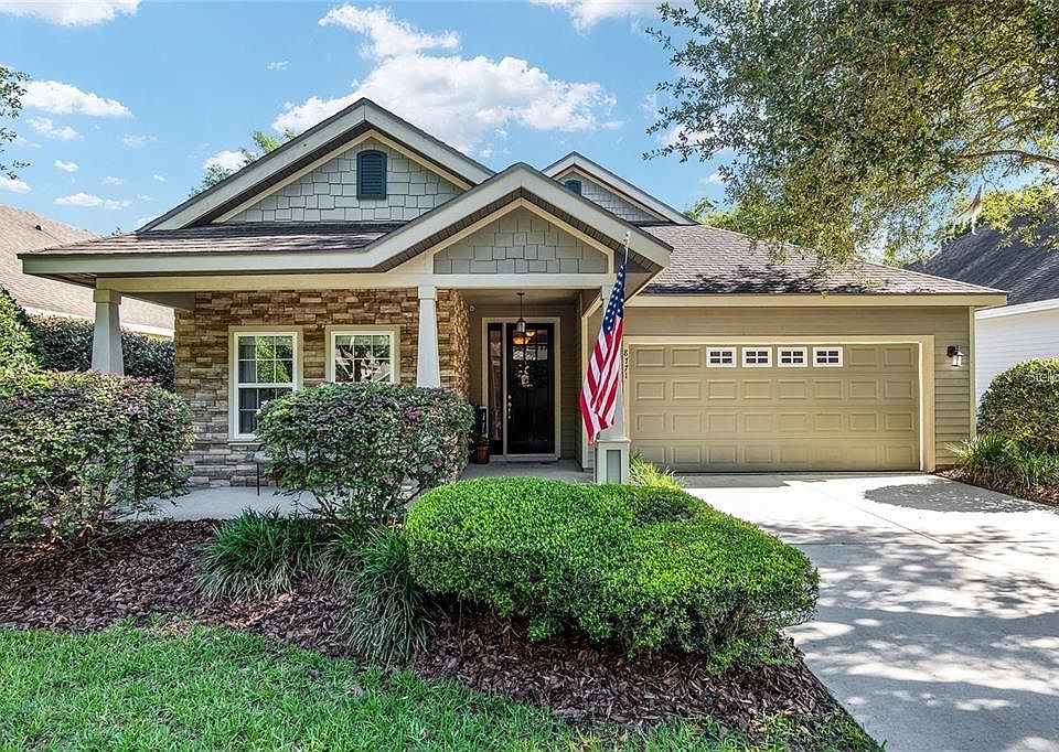 Fantastic, turn key open and bright home for rent in Haile Plantation's Market Square neighborhood. Available now. This 3 bedroom, 2 bathroom home was built in 2010. The contemporary floor plan features wood floors, high ceilings and lots of natural light. Haile Plantation is an award-wining new urbanist community of single family and multi-family neighborhoods surrounding a village, Publix market and a Gary Player designed golf course. Optional country club, Hawkstone, includes tennis, fitness, two pools, and Pilates/yoga. There are miles of trails, numerous bike paths, and many play grounds and parks. From the front sidewalk, off the cul-de-sac street you enter the front porch and covered entry. The foyer opens to the split bedroom plan. To the left are two bedrooms and the shared guest bathroom. The Great Room has crown molding and wood flooring. It opens to the Primary Suite. This room has large windows that overlook the rear yard. Off the room is the walk-in closet and primary bathroom. The bathroom has a private water closet, jetted tub, separate shower and vanity with double sinks. The Great Room is open to the kitchen with breakfast bar, granite counter tops and 42 inch wood cabinets. There is a pantry and separate dining area. The rear yard is fenced with an open paver patio, fire pit and covered, open porch. The home has an indoor laundry room with washer and dryer. There is an attached, two-car garage. Walking distance to an RTS bus stop, Haile Publix shops, restaurants and offices. Haile Plantation is 6 miles to the University of Florida, UF Health/Shands and the Gainesville VA. Zoned for A-rated schools: Chiles Elementary, Kanapaha Middle and Buchholz High Schools.