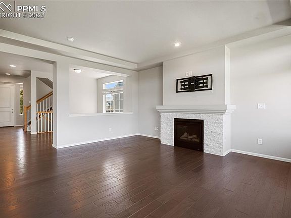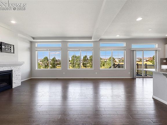 Fall in love with this stunning home nestled in the Banning Lewis Ranch community! From the moment you arrive, you'll be captivated by the evident pride of ownership that radiates from every corner. The thoughtfully designed open floor plan includes hardwood flooring throughout the main level, as well as a gas fireplace, offering ample space for hosting gatherings or enjoying quality time with loved ones. The kitchen boasts granite countertops, white cabinets, and a large island, all seamlessly connected to the back deck offering breathtaking views and open space, perfect for those summer sunsets. As you head upstairs, you’ll find the large primary bedroom featuring an attached en suite bathroom with a spacious walk-in closet, upstairs laundry, two additional bedrooms sharing a well-appointed bathroom, and a loft area providing a perfect space for unwinding or enjoying games. The unfinished walk-out basement is a blank slate awaiting your creative touch or can be used for storage. Easy access to furnace & hot water heater with hot water recirculating! Don't delay in taking advantage of all that Banning Lewis Ranch has to offer, as this one is sure to go quickly.