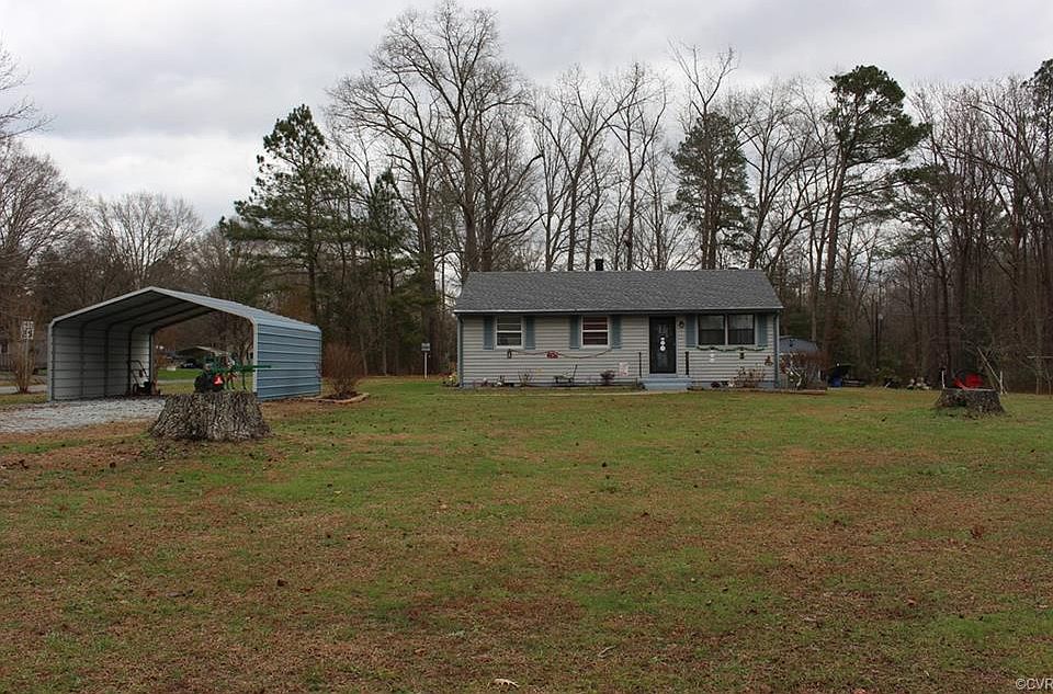 Price just reduced! Welcome home to this charming rancher on a spacious 1.34 acres in the Corinth Heights neighborhood of King William. This well maintained economical home features a new roof, newly finished hardwood floors, freshly painted walls, new ceiling fans throughout, and is move in ready. The eat in kitchen has been fully updated with laminate wood floors, ceramic back splash, new countertop, and new appliances that all convey. The bright living room features hardwood floors, wood trimmed windows, and a coat closet. Three bedrooms are bright and feature hardwood floors. Relax in the comfort of the covered back porch overlooking a spacious 1.34 acres equipped with a carport, a brand new "she" shed and a "he" shed with a new roof, fruit trees, raised garden beds, and an outdoor fire pit. Come on home!