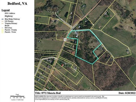 Looking for a home with acreage (12.8 acres) close to both Bedford and Smith Mountain Lake? This could be the home that you have been looking for. This home was built in 1900 and once served at the Davis Mill School. Features include main level living, hardwood floors, spacious kitchen with stainless appliances, replacement windows, covered front porch, sun room, and rear patio. The exterior of the home offers a 1425 square foot detached garage/workshop with carport, open acreage, wooded acreage, abundant wildlife and a spring. County water is available at the road for future connection if desired. This is a great property in a very convenient location. Call today to schedule your private showing.