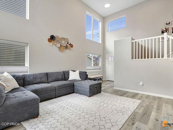 Stunning Sterling Plan by the Petersen Group located in the sought after Sonoma Glen subdivision near trails, Kincaid Park, shopping & schools. Open floorplan downstairs with 18' vaulted ceilings, LVP flooring & a spacious great room with gas fireplace & walls of windows that let the light in. Kitchen with solid surface counter tops, SS appliances, pantry, island & breakfast nook. Upstairs ishost to all 3 bedrooms & 2 full baths including the primary suite with spacious bathroom & walk-in closet. Relax in your beautifully fenced & landscaped yard with an abundance of privacy or tinker around in your large 2-car attached heated garage. Home is immaculate with only 1 owner & a 5* energy rating. Love where you live!!