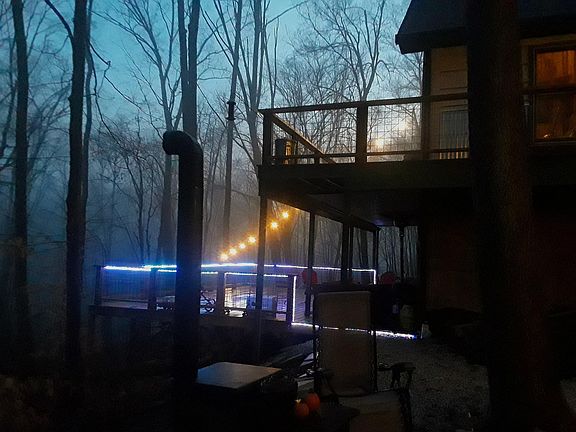 For rent, mid-August 2018 through mid-June 2019. 3 bedrooms, 2 bathrooms, $1,200 a month. Recently updated, this unique cabin features high ceilings, an open floor concept, lofts, a screened in porch with a fire table, and a three level spiral staircase. It can be rented fully furnished, partially furnished, or unfurnished. The outdoor area has two decks, a wood-fired hot tub, multiple firepits, screened-in porch with a fire table, and a small climbing structure. The house sits on 7 acres of forest, with access to 100 more acres of woods, a creek, waterfalls, a large field, and a pond for fishing and swimming. Located about 25 minutes south west of downtown Bloomington. Non-Smoking.