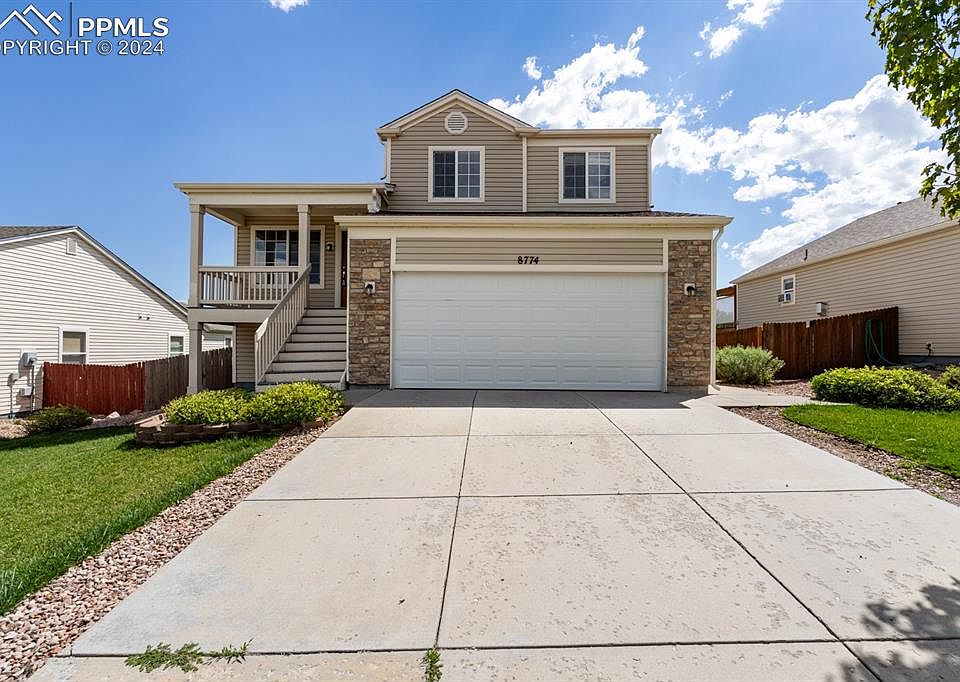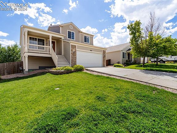 Beautiful 4 Bedroom/4 Bathroom Home in Fountain! New interior paint, LVP and carpet throughout! Newer impact shingle roof and water heater! Lush front yard and covered front porch enters to formal living/dining/flex space with vaulted ceiling! Large eat in kitchen with pantry! Charming lower level family room features gas fireplace and built in cabinetry! Half bath access on lower level. Walk out to concrete patio and fenced backyard! Primary suite on upper level includes vaulted ceilings, walk in closet and attached private bath! Two additional bedroom on upper level with easy access to hall bath. Finished basement provides additional en suite bedroom with built in shelving and closet, or use this space for additional common room/flex bonus room/whatever your needs may be! Laundry hookups in basement mechanical room, water heater less than a year old! Additional property amenities include central air, attached 2 car garage and sprinkler system! Located close to schools and parks, with easy access to Fountain dining/entertainment and access to Fort Carson, be sure to take a look at this one before it's gone!
