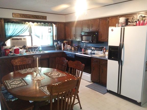 3 bedroom Ranch, one and a half bath kitchen and laundry area, electric ceiling Heat and also has a flue for wood Heat, home is located in the Lincoln Trail School District, appliances are to remain and also might consider a contract for deed what's a down payment of $50,000. The home also has a large detached garage and two driveways.