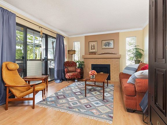 AMAZING VALUE FOR A GORGEOUS HOME! This large northwest corner unit is just about perfect. It has a large living room with a gas fireplace and sliding door opening to a covered balcony. The dining area can accommodate a large table as well as a bar - or extend the kitchen to suit your needs. The bedroom and closet are large and there is a big pantry too. Note some pics are virtually staged as labelled but not the bathroom: it was beautifully renovated in 2020! Well-run strata in a great area near shopping and transit to UBC, Richmond, YVR and pretty much everything you need. 4 rentals allowed and at max; sorry no pets and this is a non-smoking building. 1 secure pkg and 1 locker.