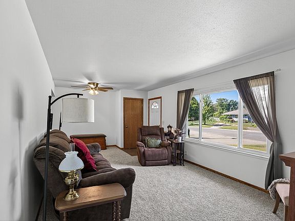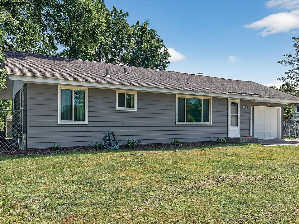 Charming rambler with three bedrooms on the main level.This home features a freshly painted interior and exterior, brand-new carpet, and original hardwood floors preserved under the carpet. Situated on a spacious, fully fenced lot with a large storage shed, ideal for outdoor storage or hobbies. Numerous recent updates include: windows, roof, garage door, furnace, and water heater. Located just a short walk from schools, parks, and scenic walking trails—this home offers comfort, convenience, and move-in-ready value! Heated garage and work shop in the basement. The lower level den could be a bedroom if an egress window was added.