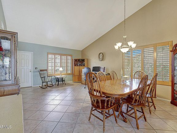Pride of ownership shines through in this MUST SEE 2-story beauty! Looking for an AIRBnB/VRBO property? This may be what you've been looking for! Located in a NON HOA community & within walking distance of the entertainment district of Westgate & Cardinals Stadium, this extremely well taken care of 4br, 2.5 ba 1-owner home has something for everyone. As you make your way through the front door you'll immediately be wowed by the high vaulted ceilings in your formal/flex room area w/large windows nicely dressed w/plantation shutters allowing natural light to shine through. The diagonal flooring continues throughout the main floor effortlessly leading you to your kitchen and family living areas. Opened to the large comfortable living area, your eat-in kitchen has a fantastic bay window overlooking your private pool/yard along w/granite counters, island w/storage as well as extra storage cabinets above it, convenient pull-out drawers too w/a French door fridge & pantry. Wood blinds & plantation shutters grace the remaining downstairs windows along with a tucked away ½ bath w/new toilet and separate laundry center. Before heading upstairs, stop to take a look at the large L shaped storage area under the stairs. The vaulted ceiling continues at the owner's suite along with an additional bay window giving it a grand feel. There's a custom walk-in closet w/storage nooks & a built-in laundry receptacle. Its en-suite was recently updated and includes a walk-in shower, new toilet, dual sinks w/hidden cabinet drawers & new flooring. The remaining 3brs are ample sized w/custom closets too. The 2nd bath has a new toilet, hidden cabinet drawers & new flooring as well. The linen closet outside the 2nd bath supplies you with even more storage! Making your way out to the fabulous entertainer's private back yard, you'll immediately be greeted by the large covered patio, perfect for dining al fresco, large grass area and fenced self-cleaning play pool which has fiber optic lighting. And if there wasn't enough storage on the inside of the home for you, make sure to check out the large storage shed in the backyard that is staying! There are gutters located at both the front and back of the home as well. The 2-car garage houses a utility sink, shelving & service door which will lead you out to the RV gate & paved extended parking area. Your roof was redone in 24'. An energy efficient Trane HVAC system along with beautiful awnings added throughout are keeping the current owner's home around $153/month - crazy! With a water-softener & ceiling fans throughout the home PLUS located on a North/South lot, this home has it all!!