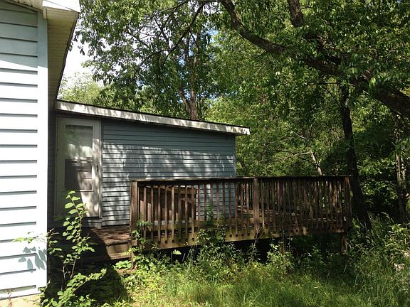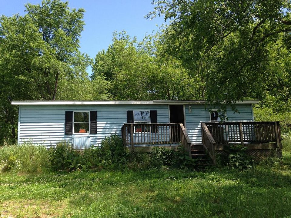 Partially wooded property (5.37 acres) with fields and cut paths leading to frontage on the Coldwater Creek at the back of the property. A picturesque bridge crosses the stream. The manufactured home is situated in a clearing and is being sold As Is. A two stall garage with an attached shed and chicken koop are detached from the home. Privacy and nature abound.