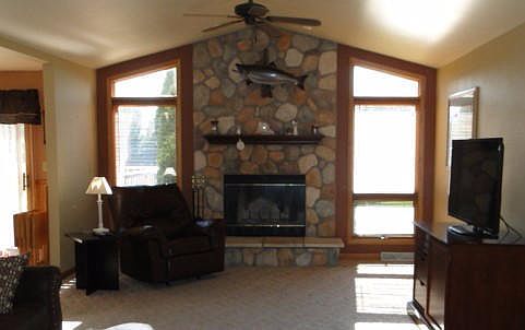 A ''right-sized'' ranch on an acre lot. Functional floor plan with 3 bedrooms & 2 full baths on the main level. Nice kitchen/dinette with patio doors to super-sized deck overlooking the large level lot. Great room with vaulted ceiling and floor to ceiling field stone fireplace & main floor laundry. Finished lower level offers a multitude of multi-purpose rooms. Rec room, craft room, office, etc. plus an additional half bath. Use this additional space as you wish, there is plenty of room to grow here!