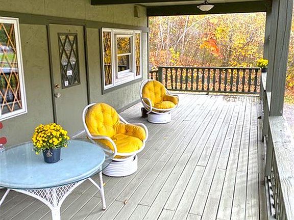 Mixed use building on Route 28...with great exposure for restaurant, artist gallery, small deli, store, or office work space. Downstairs has 1,250 square feet with an additional 200 square foot covered deck and handicap access. There is an existing refrigerated deli/dairy/soda display. The walk-in refrigerator is operational. The only "restaurant" fixtures remaining are the kitchen sinks (stainless steel) and commercial exhaust hood (stainless steel). Building has 400 amp service. First floor needs new heat source. It is set up for forced hot air. It could easily be made into an additional residential rental unit, should buyer not have a commercial use in mind. Great all-season rental income (AirBnb or full time), for hikers, skiers, fishers. Second floor (accessed via rear staircase) is a completely renovated 1,400 sq/ft apartment with: 2 BR, 1-1/2 Bath, large eat-in Kitchen, large LR. Laundry facilities are in the large half-bath. A front balcony (6 x 30) is accessed via sliders from BR and LR. Second floor apartment currently rents for $2000/month plus utilities, but owner has received $225/night on Air BnB. Full dry basement has 1,250 square feet w/ high ceilings, poured concrete foundation. Basement presently accessed via set of exterior BILCO doors. Could easily integrate internal stairway from first floor. Ample parking for 10 vehicles or more.
