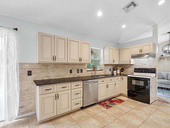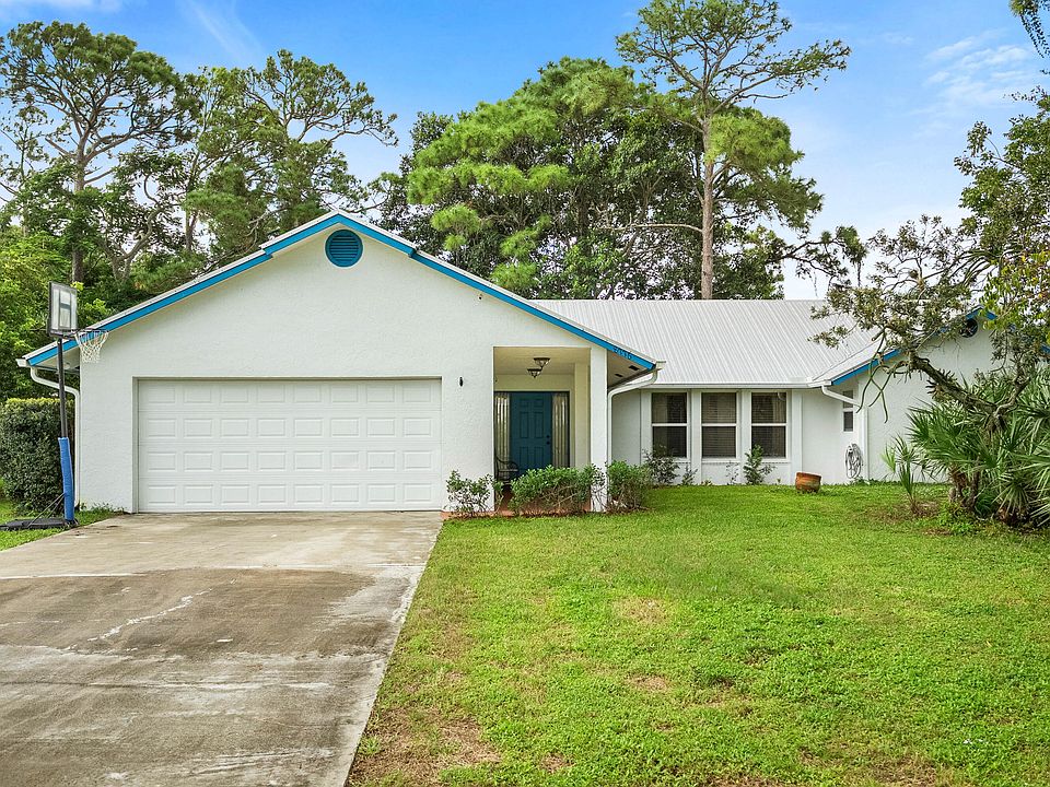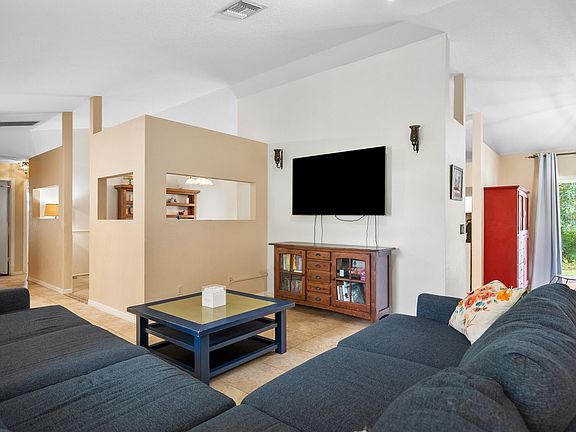 Welcome to Papaya Village in Hobe Sound! This 3-bedroom, 2-bath, 2-car garage home offers over 1,900 sq ft of living space on a quiet dead-end street with no HOA. Inside, enjoy two living areas, a spacious dining room (approx. 12x9) off the kitchen (approx. 12x10), and a bonus alcove. Both bathrooms have been recently remodeled, adding a fresh modern touch. The roof is a flat seam metal leaving you worry free. Outdoor living shines with a covered patio, concrete slab, and lush backyard featuring mulberry and mango trees. The smaller living area overlooks the yard while the larger welcomes guests at the front. Papaya Village is known for its friendly neighbors and prime location--just minutes to the Indian River, Jonathan Dickinson State Park, Hobe Sound shops and dining, Tequesta, and Jupiter. With Martin County taxes and a tranquil setting, this home combines charm, updates, and lifestyle.
