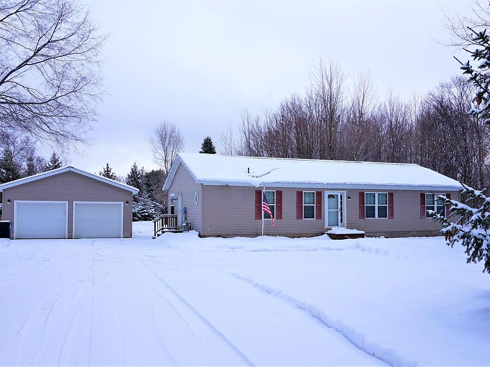 Mancelona ranch style 3 bedroom, 2 bathrooms manufactured home. Metal roof, covered back deck, and a 24 x 32 garage with heated bonus room. Not often do you find a home on the edge of town with acreage that gives you the feeling of country life. Natural gas, cable tv, high speed internet, and municipal water are a bonus in this location. Affordable home with immediate occupancy, move in condition, and a 1-year home warranty included.