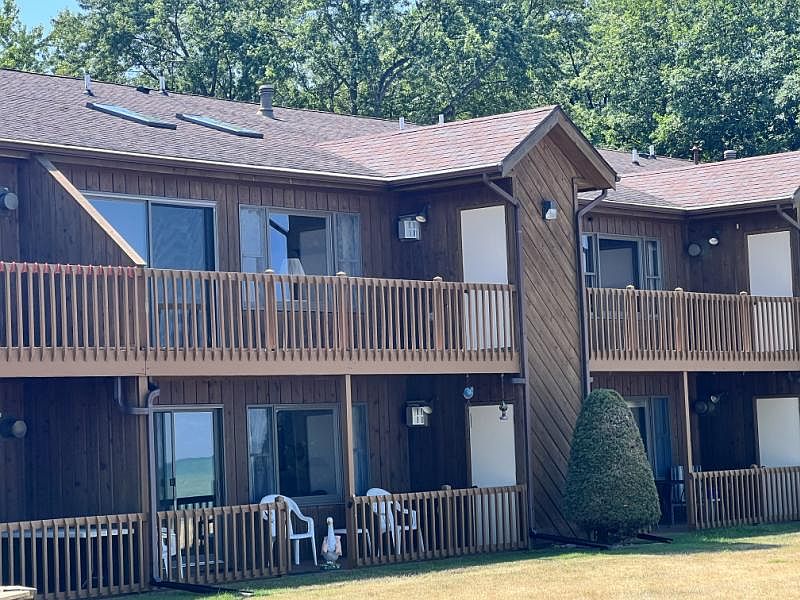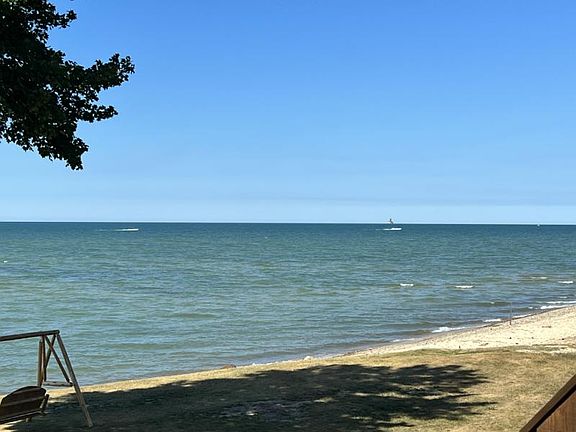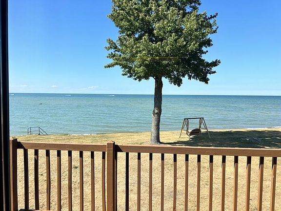 Spectacular lake views with breathtaking sunsets. Sitting on the lakeside deck you'll see a view of the Port Austin Reef Lighthouse! This second level 2 bedroom, 2 bath condo with a 1 car garage, has been updated with Cambria Quartz countertops, new refrigerator, stove, microwave, cupboards, and furnace with air in 2019, hot water heater 2021. Monthly HOA dues $300. Don't wait, this won't last long!