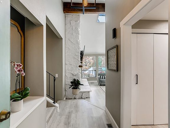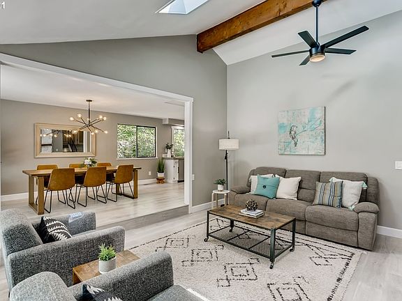 Tri-level home in desirable Tualatin cu-de-sac! sleek updates in kitchen and baths; lighting, hardware, flooring, interior and exterior paint. skylights and large windows flood the space with natural light. Flowing main level with vaulted ceilings, 2 white rock wood burning fireplaces with exposed wood mantles. 4 bedrooms, 3 full baths, interior laundry, tall (and deep) garage for creative storage options and a NW adventure yard with deck for hosting or playing. All around appeal ..its the ONE!