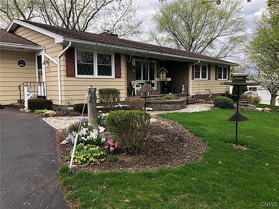 Wonderful well maintained 3 Br, 1.5 Ba Ranch on over an acre in the Weedsport School District. Convenient location close to the Village and an easy commute to Auburn or Syracuse. As you come up the driveway you are greeted by wonderful flowers and gardens leading you to the relaxing front porch. Enter and you are greeted by the warmth of a gas fireplace. Beautiful original hardwood floors are evident throughout the expansive family room and flow through the 3 large bedrooms on the main floor. The eat in kitchen boasts solid wood cabinets with a large center island. The newly updated full bathroom is truly something to see with a large walk in tile and river rock shower, as well as full sized bathtub. There is direct access to the full bath from the Primary bedroom. Enjoy your morning coffee overlooking the back yard in the beautiful sun room directly off of the family room. The first floor is rounded off by a laundry room with folding area, as well as a seperate 1/2 bath. The basement is partially finished with a second kitchen/laundry and large recreation/living area and office. The home is capped off by an oversized 2 car garage. Delayed negotiations until 5/30-3pm